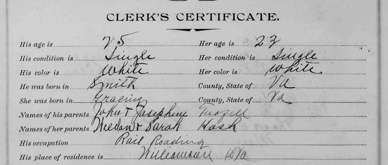 I searched the records of Smyth County. Nothing. I checked Grayson County where Clara was born. Nothing. I abandoned my search.