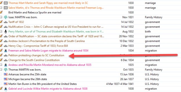 I was looking at a petition that some of my ancestors had signed asking the SC General Assembly not to change the SC Constitution. By the way, that petition did not work out, the General Assembly was still all about nullification and states rights and changed the SC Constitution.